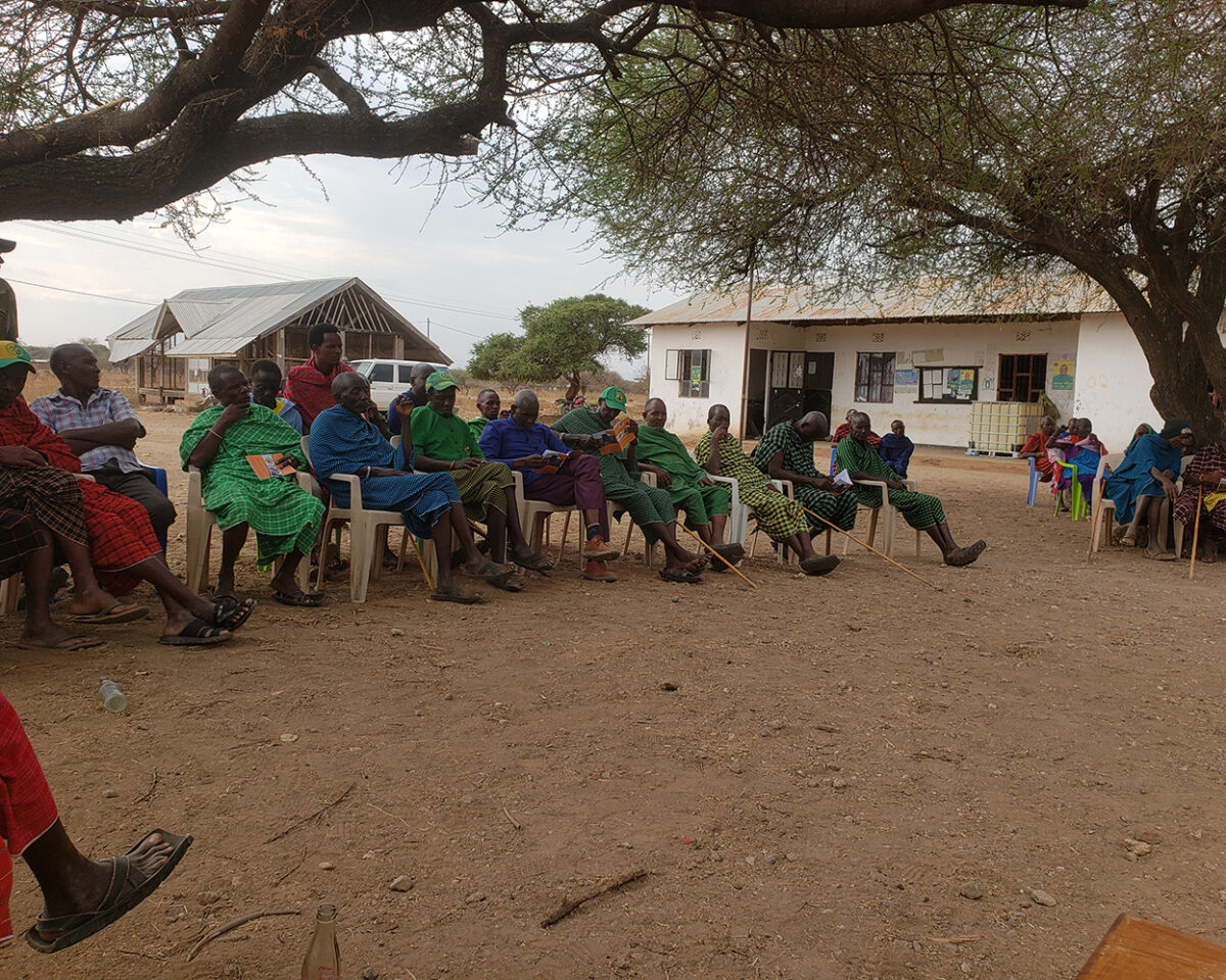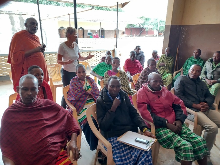 In juli heb ik de Maasai weer bezocht. Ik werd daar uitgenodigd om een vergadering van projectleiders en trainers bij te wonen. Deze projectleiders en trainers komen regelmatig bijeen om problemen te bespreken die ze tegenkomen als ze aan de veehoeders van de Maasai trainingen geven in nieuwe methodes van omgaan met en ziektebestrijding bij het vee. Hiermee wordt met minder vee een grotere opbrengst mogelijk. En dit is weer belangrijk om overbegrazing tegen te gaan in hun land dat droger wordt door klimaatverandering en kleiner door inname door de regering.